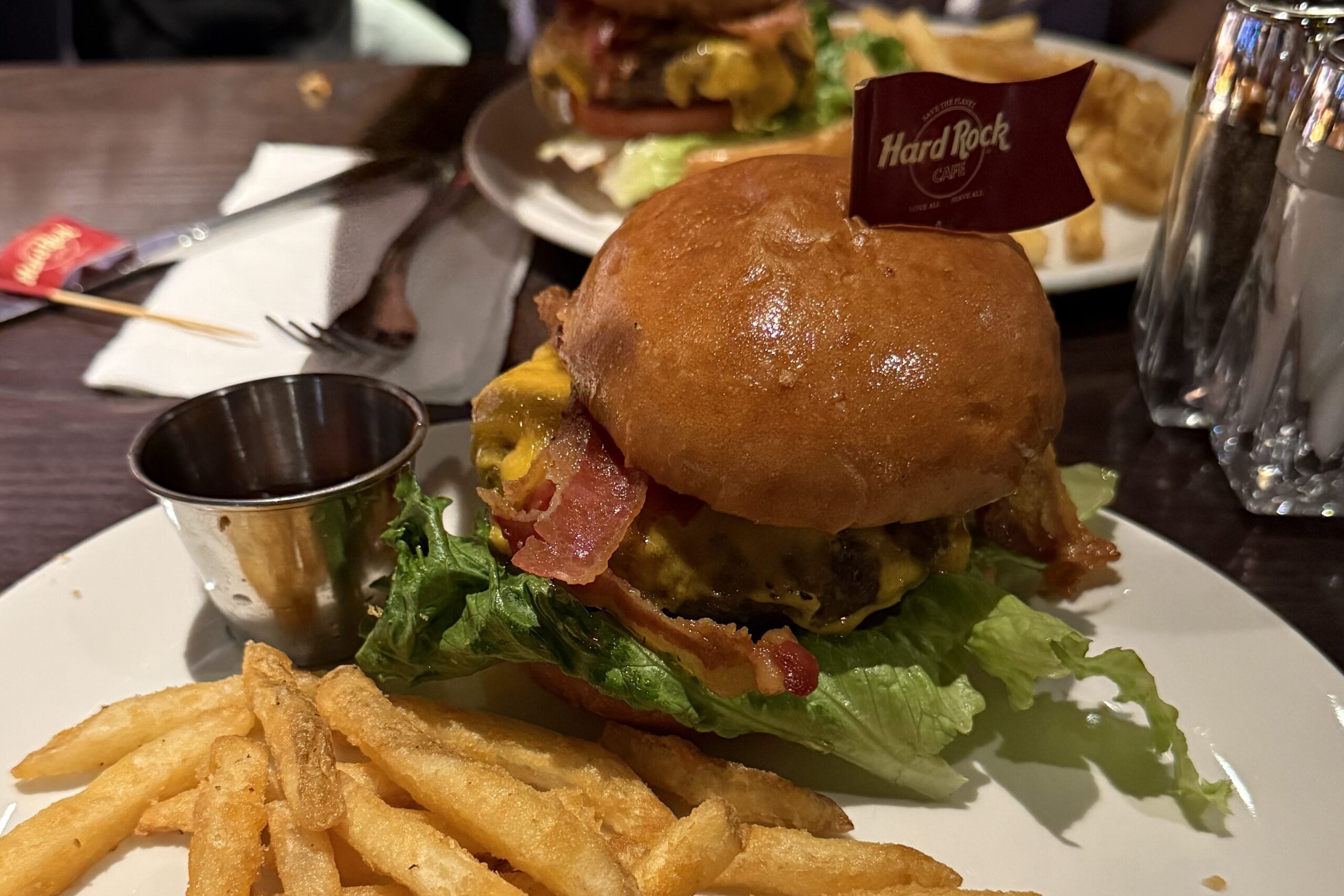その後は昼食をとりにハードロックカフェに行きました。普段はあまりハンバーガーは好きではないのですが、せっかくなのでハンバーガーを食べました。